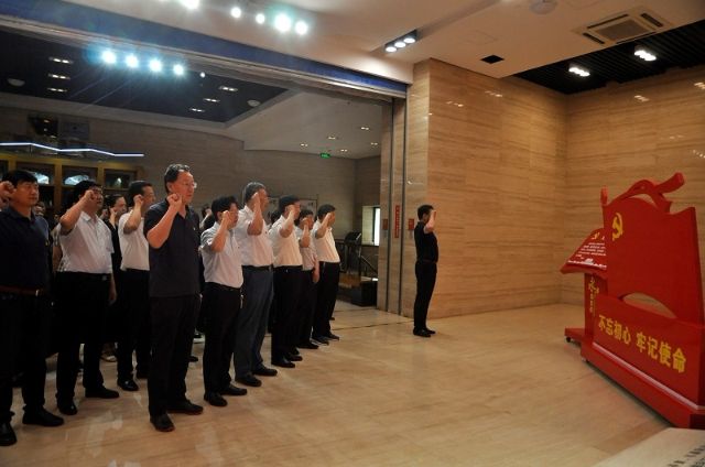 “我志愿加入中国共产党,拥护党的纲领,遵守党的章程、履行党员义务......”,庄严的入党誓词响彻纪念馆,参加活动的全体同志面对鲜红的党旗肃穆站立,右手高举握拳,在领誓人的带领下庄严宣誓,再一次接受党性的洗礼,表达不忘初心、砥砺前行、为党的事业奋斗终生的决心。